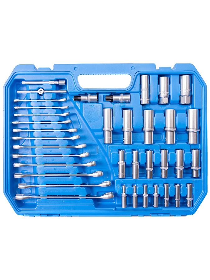 Рациональное размещение инструментов в кейсе обеспечивает удобство транспортировки и облегчает поиск необходимого инструмента. Сами инструменты расположены в индивидуальных подписанных ячейках, снабженных фиксаторами.