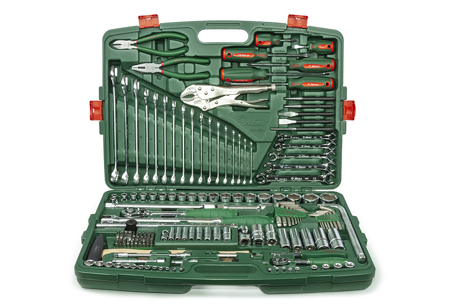 Набор инструментов общего назначения TK-158V от HANS незаменим при ремонте автомобиля. Его расширенная комплектация дает возможность уверенно заявить о том, что в этом наборе найдутся инструменты для практически всех видов работ в гараже или автосервисе.