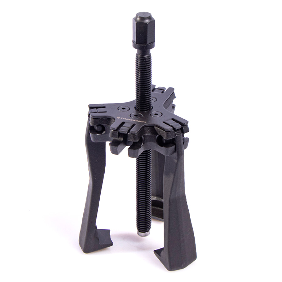 Отличительной особенностью данного съемника является механизм крепления захватов, которой представляет собой, кованную упорную площадку в которую устанавливаются захваты. На захватах имеются специальные насечки позволяющие фиксировать захват в заданном положении, удержание обеспечивается за счет специальной пластины из пружинной стали. Благодаря такой конструкции можно с считанные секунды трансформировать съемник под внутренний или внешний захват.