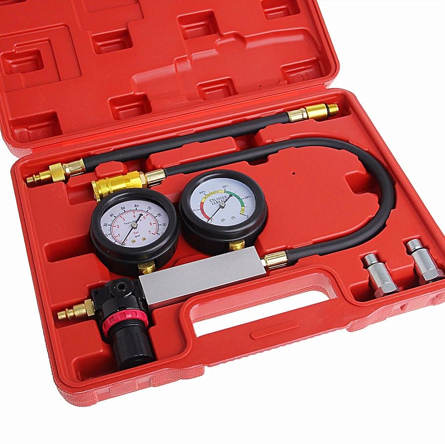 Представляет собой специальное приспособление с двумя манометрами при помощи которого можно выявить целый ряд таки неисправностей как, плотность прилегания клапанов, целостность прокладки головки блока цилиндров, выявить трещины в стенках цилиндров, проверить плотность прилегания поршневых колец двигателе внутреннего сгорания.